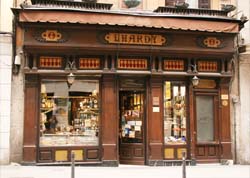 It is believed that the restaurant took its name from the famous Café Hardy in Paris. When Emilio Huguenin's restaurant became so famous, he decided to change his own name to match, and so he became known as Emilio Lhardy. From the 1840s the Lhardy restaurant began appearing in Madrid city guide books of the era such as Pascual Madoz's geographical dictionary. Also during this time was when the Spanish monarchy came to eat at the restaurant. Rumour has it that Queen Isabel II often escaped from the palace just to enjoy a meal at this Spanish restaurant.